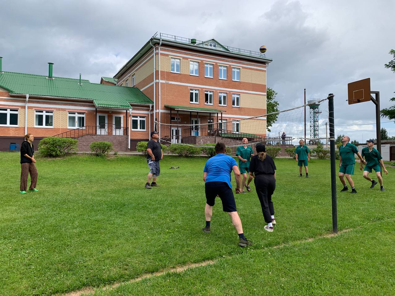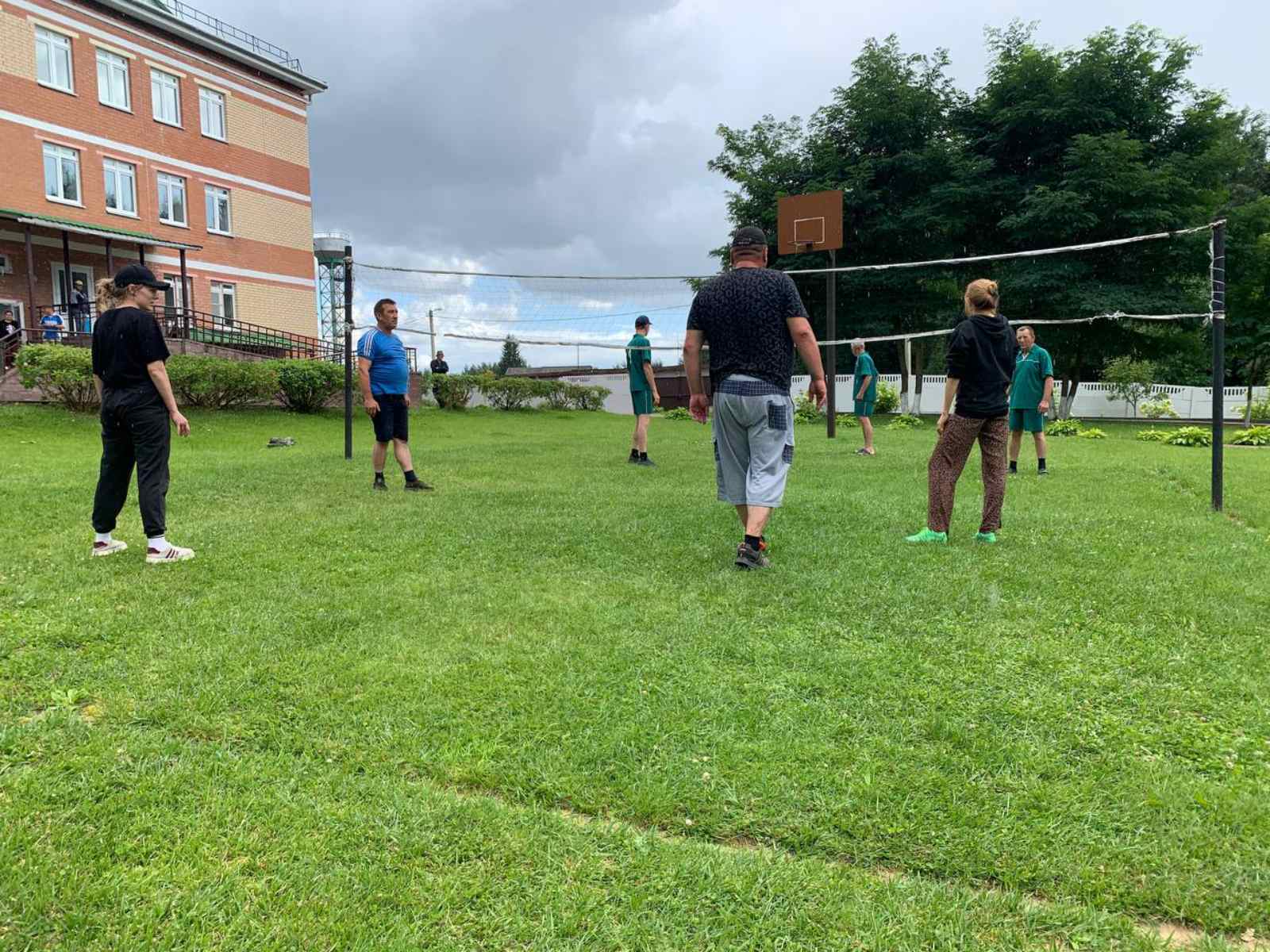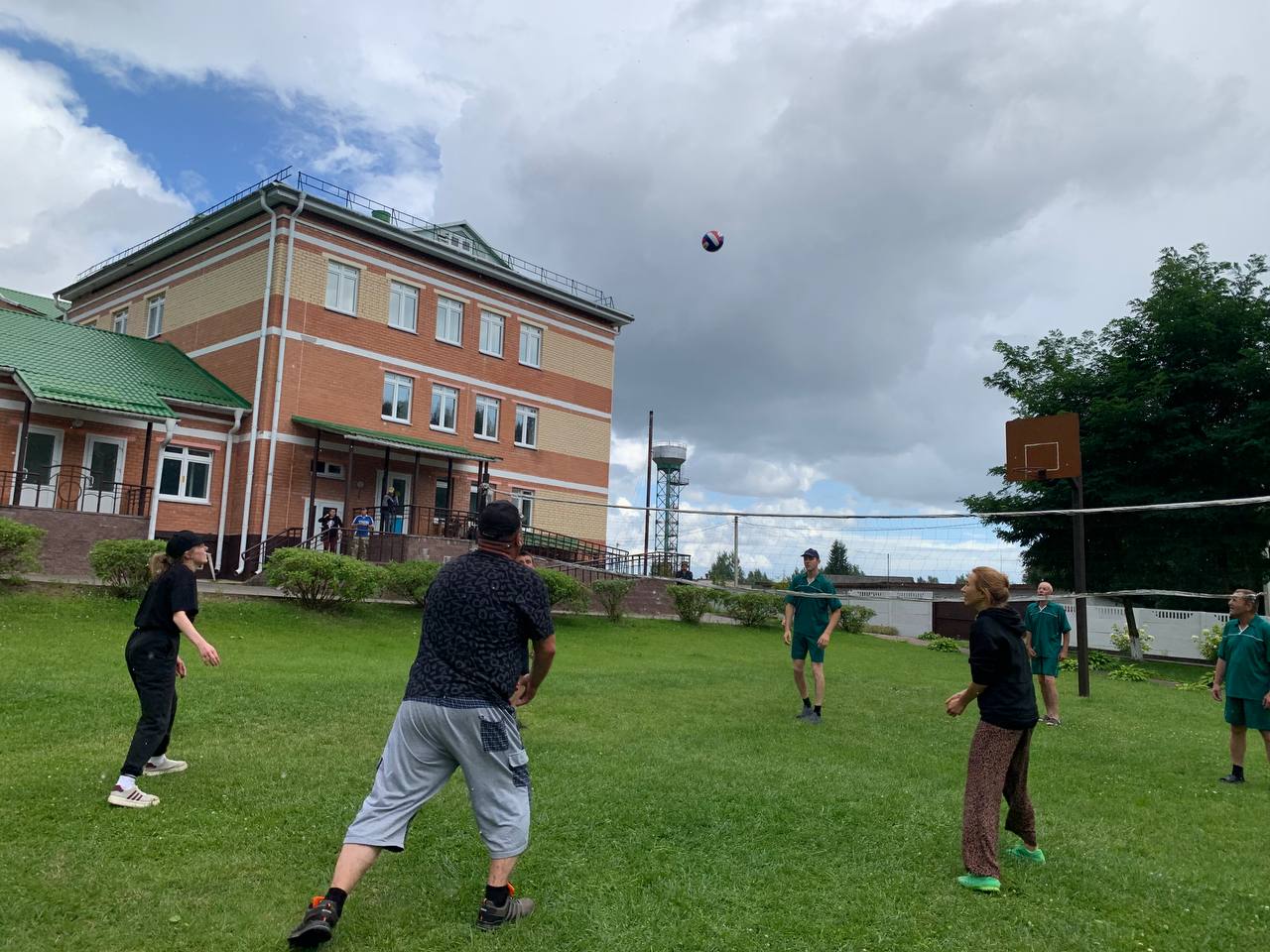 На спортивной площадке пансионата нет разделения на сотрудников и проживающих — есть только две команды, объединенные азартом игры. Финальный матч волейбольного сезона стал кульминацией месяцев тренировок и совместных усилий.
